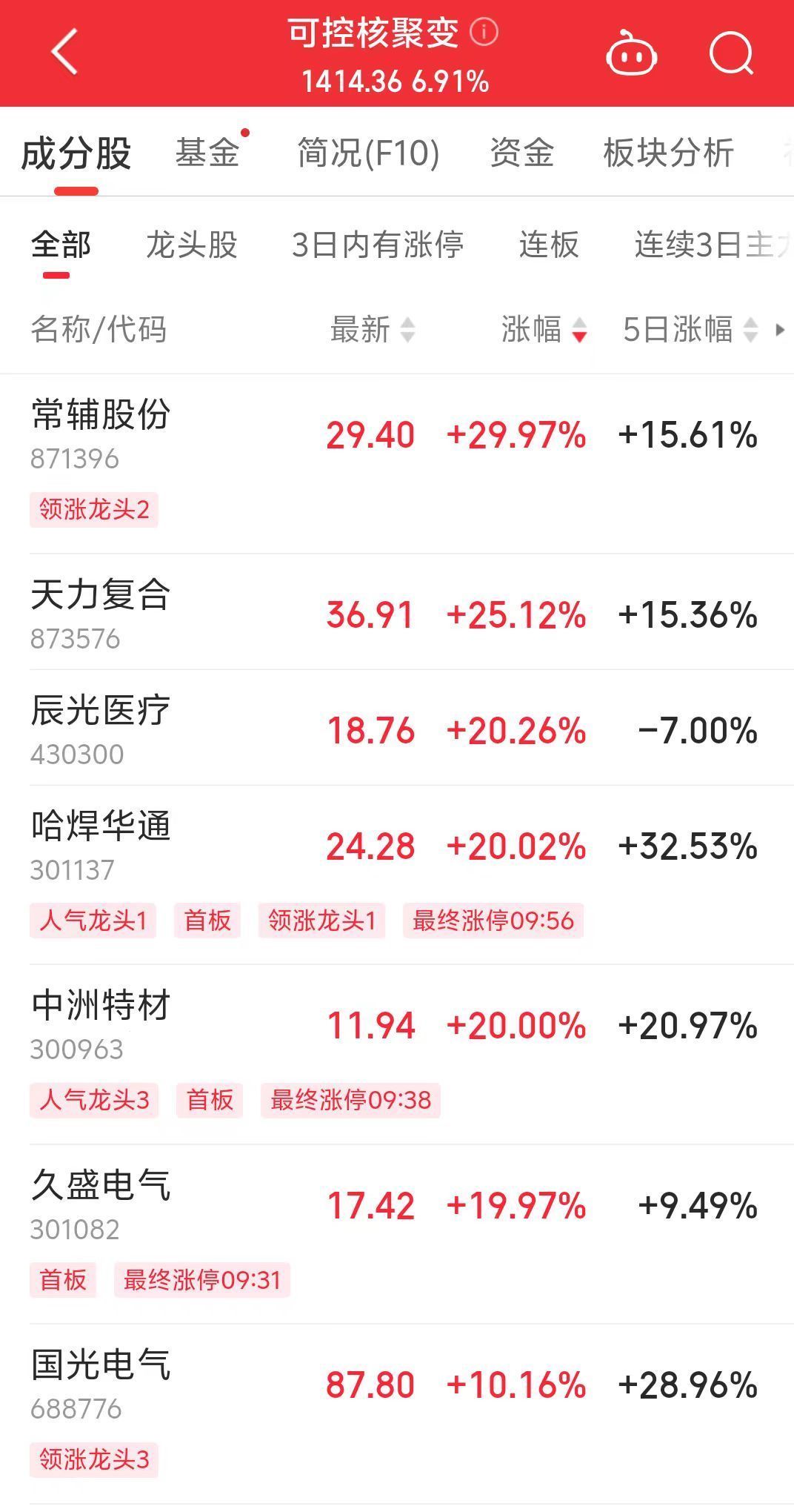 3月25日,可控核聚变板块大爆发,指数一度涨超7%,掀起涨停潮。